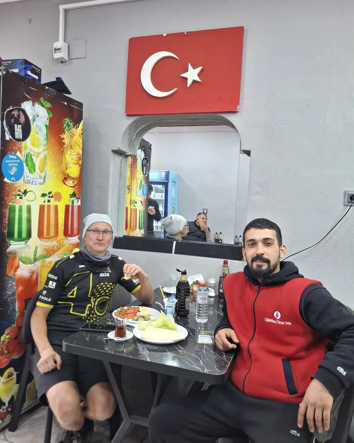 Almanya’dan Türkiye turuna bisikletiyle çıkan Alman turist, Hatay’ın Dörtyol Kuzuculu Mahallesi’nde sıcak bir misafirperverlikle karşılandı. Uzun yolculuğu sırasında mahallede mola veren turist, Çiğ Köfteci Ömer Usta’nın sahibi Mevlüt Okur tarafından misafir edildi.
