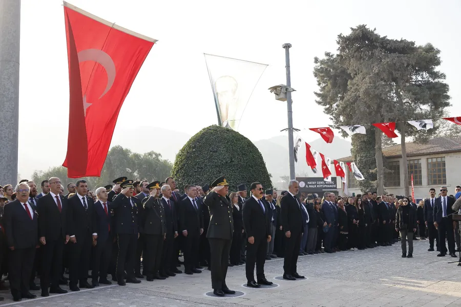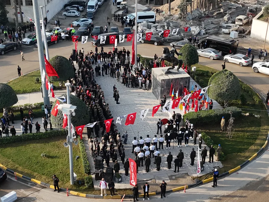 Törene Başkan Öntürk’ün yanı sıra Hatay Valisi Mustafa Masatlı ve il protokolü katılım sağlarken Başkan Öntürk, Vali Masatlı ve garnizon komutanı tarafından Atatürk Anıtı’na çelenk sunuldu.