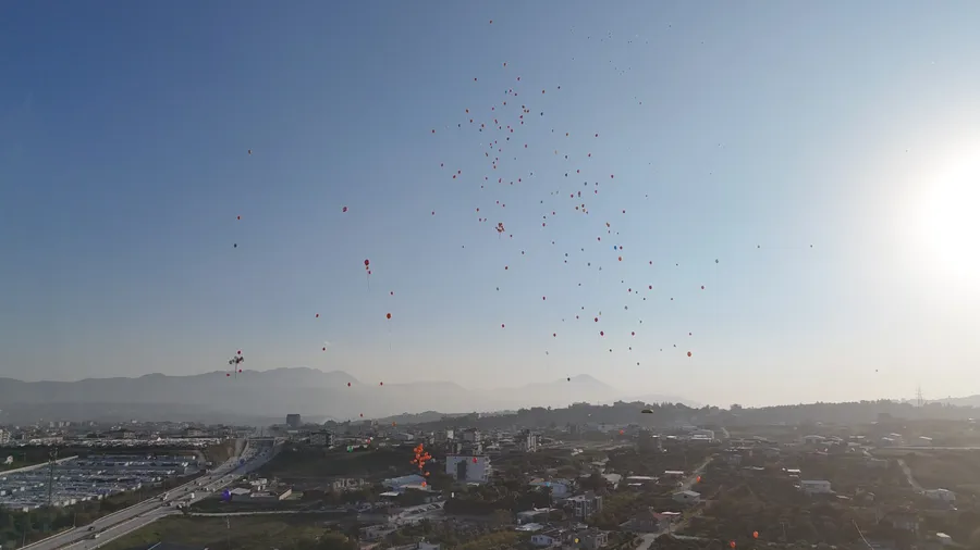 Vatandaşların yoğun ilgisiyle düzenlenen etkinlikte bir araya gelen kalabalık, Ceylin ve annesiyle birlikte rengarenk balonlarını gökyüzüne bıraktı.