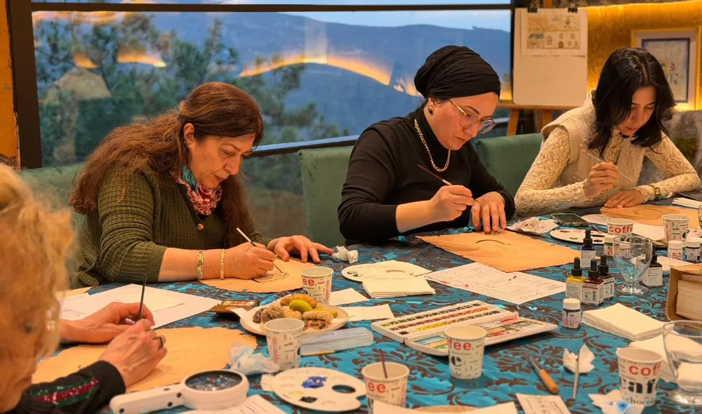 “Hep Aynı Sofrada” anlayışıyla düzenlenen özel etkinlikte, minyatür ve tezhip sanatçısı Serap İnan rehberliğinde yanık kâğıt üzerine işlenen vav harfi çalışması gerçekleştirildi. Geleneksel sanatın zarafeti, katılımcıların ellerinde özgün eserlere dönüştü.