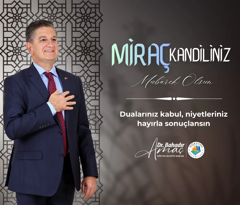 Dörtyol Belediye Başkanı Bahadır Amaç mesajında; “Miraç Kandili’nin gönüllerimize huzur, hayatımıza bereket ve insanlığa umut getirmesini temenni ediyorum.