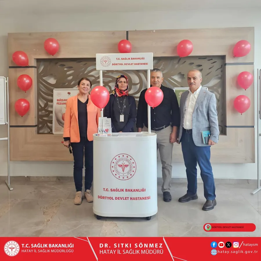Dörtyol Devlet HastanesiYönetimininde katılım sağladığı stantta; sağlık çalışanları ve vatandaşlara doku ve organ bağışı hakkında bilgilendirmelerde bulunuldu, broşürler dağıtıldı ve gönüllü olan vatandaşların bağış işlemleri yapılarak farkındalık oluşturulmaya çalışıldı.