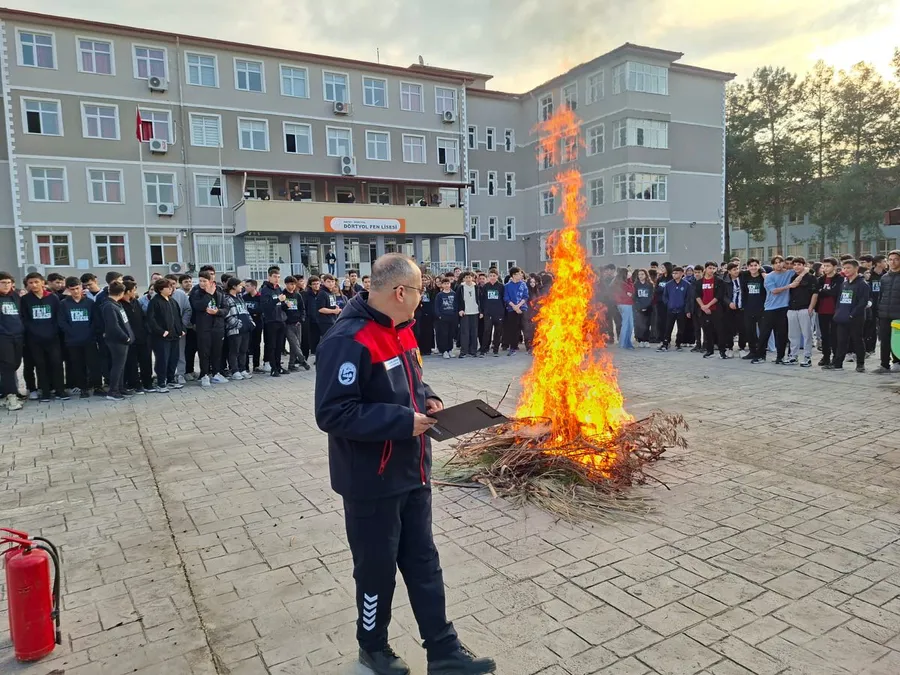 Hatay Büyükşehir Belediyesi Dörtyol İtfaiye Amirliği ekipleri tarafından Dörtyol Fen Lisesi’nde öğrenci ve okul personeline yönelik temel yangın eğitimi verildi.