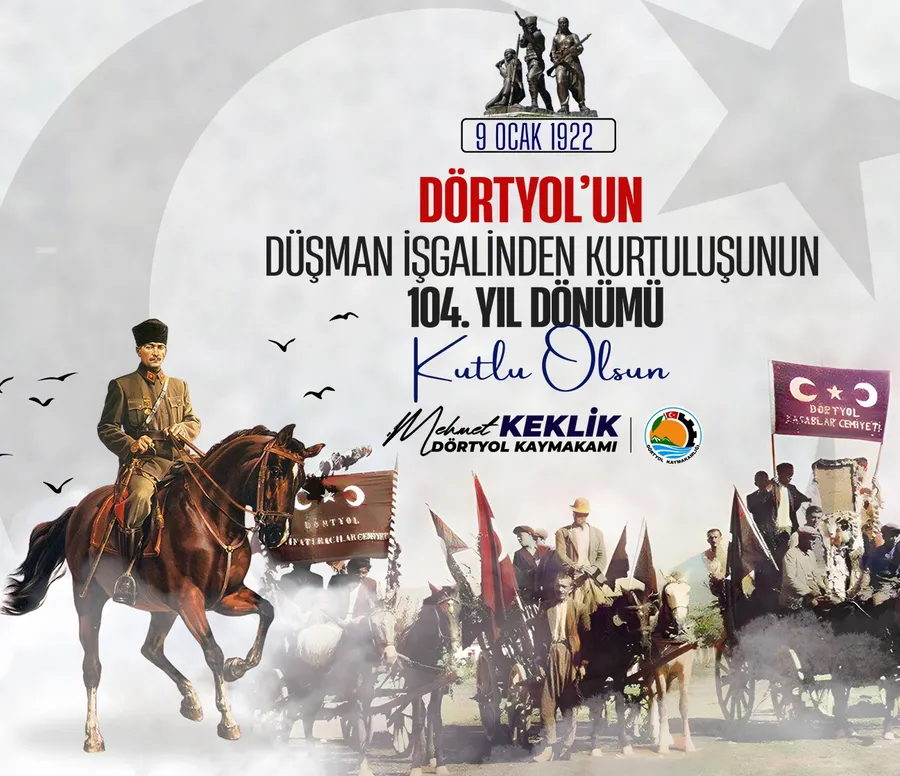 Dörtyol Kaymakamı Mehmet Keklik, ilçenin düşman işgalinden kurtuluşunun 104. yıl dönümünü yayımladığı mesajla kutladı.
