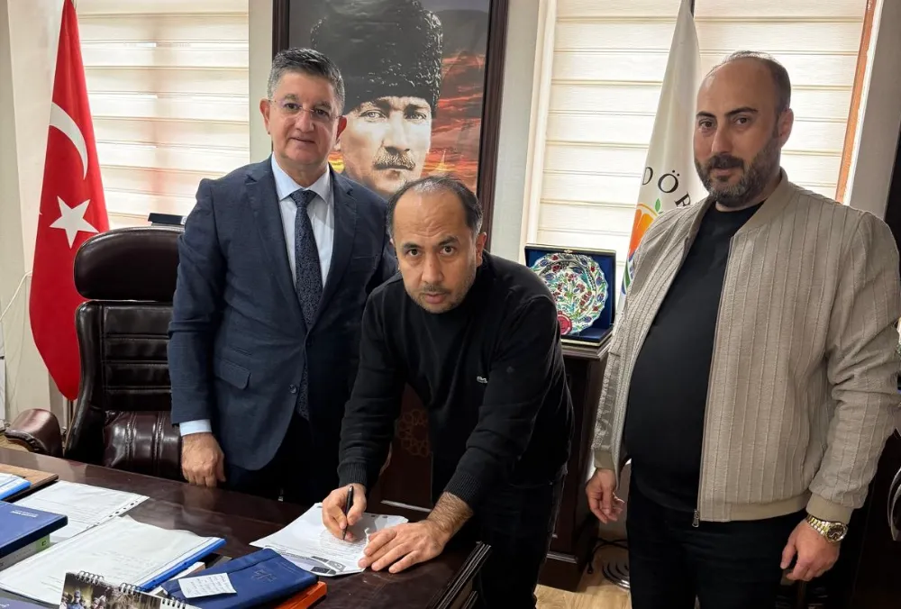 Dörtyol Belediyesi Başkanlık Makam Odasında Belediye Başkanı Dr. Bahadır Amaç ile Dörtyol Ziraat Odası Başkanı Mevlüt Coşkun, Meyve Suyu Fabrikası için ortak protokol imzaladı.