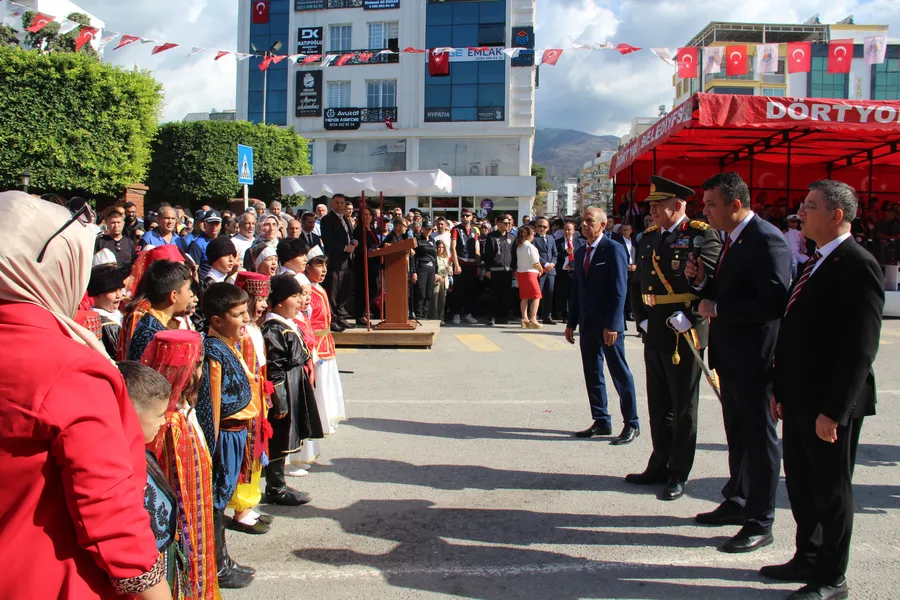 Düzenlenen kutlama törenine Dörtyol Kaymakamı Mehmet Keklik, Garnizon Komutanı Tuğgeneral Ozan Nas, Dörtyol Belediye Başkanı Bahadır Amaç, Cumhuriyet Başsavcısı Taner Gül, Kurum Amirleri, Daire Müdürleri, Sivil Toplum Kuruluşlarının Temsilcileri, Okul Müdürleri, Okulları Temsilen Öğrenci Toplulukları, Mahalle Muhtarları ve Vatandaşlar katıldı.