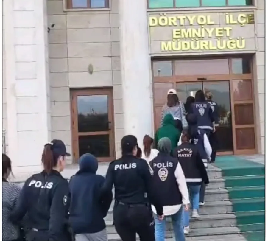 Dörtyol ilçesinde masaj salonuna gerçekleştirilen fuhuş operasyonunda 9 yabancı uyruklu kadın dolap arkasındaki gizli bölmede saklanırken yakalandı. Gözaltına alınan şahıslara 114 bin 940 TL para cezası uygulandı. İş yeri sahibi A.K. Fuhuşa Teşvik, Aracılık veya Zorlama suçundan yakalanarak  gözaltına alındı.