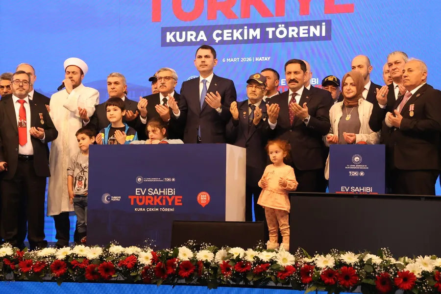 Çevre Şehircilik ve İklim Değişikliği Bakanı Kurum, "Yüzyılın Konut Projesi 500 Bin Sosyal Konut" kapsamında düzenlenen "Ev Sahibi Türkiye Kura Çekim Töreni"nde yaptığı konuşmasına çekilişi yapılacak konutların hayırlar getirmesi temennisinde bulunarak başladı.