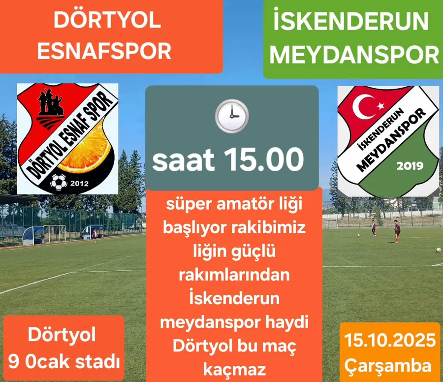 Hatay Süper Amatör Liginde mücadele edecek olan Dörtyol Esnafspor bugün (Çarşamba) Saat 15.00’de Dörtyol 9 Ocak Stadında ligin ilk maçında ligin güçlü takımlarından İskenderun Meydanspor Takımı ile karşı karşıya geliyor.