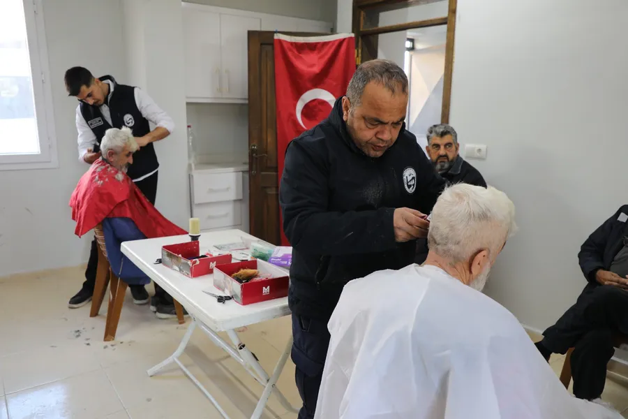 Bu kapsamda berber ekipleri, Defne ilçesi Çökek ve Hüseyinli Mahallelerinde vatandaşlara hizmet verdi. Ekipler, evlerinden çıkmakta güçlük çeken vatandaşların kişisel bakım ihtiyaçlarını yerinde karşılayarak hem fiziksel hem de moral destek sağladı.