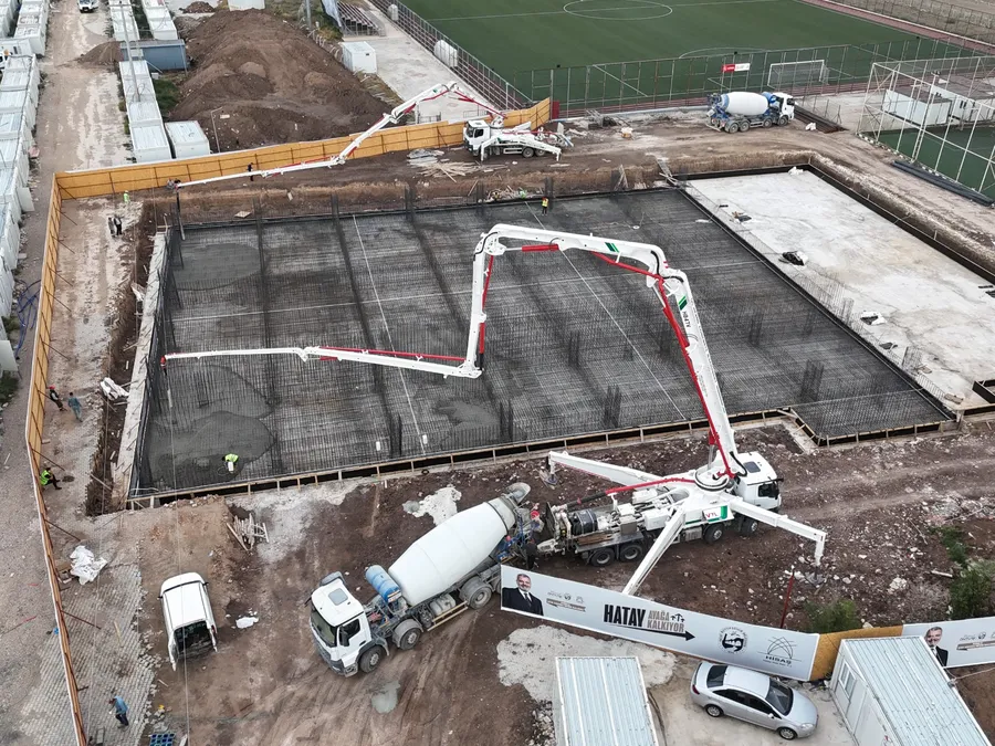 HBB Başkanı Mehmet Öntürk’ün “Hatay Ayağa Kalkıyor” ilkesiyle çalışmalarına devam eden HBB ekipleri, vatandaşların sosyal, kültürel ve spor etkinliklerini gerçekleştirebilmesi amacıyla hayata geçirilen Çok Amaçlı Spor Salonu projesine Kumlu ilçesinde bir yenisini ekliyor.
