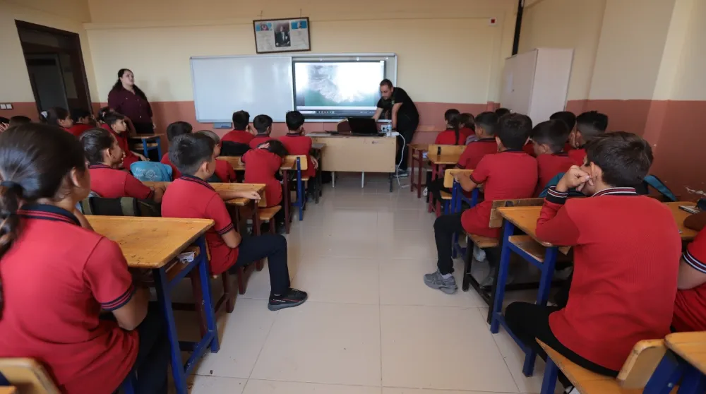 HBB Su ve Kanalizasyon İdaresi Genel Müdürlüğü (HATSU), eğitim ve öğretim kurumlarında su bilincini artırmaya yönelik çalışmaları kapsamda, Altınözü Sarıbük Mehmet Nazım Halefoğlu Ortaokulu’nda düzenlenen eğitim programında; kuraklık, su tasarrufu, suyun verimli kullanımı, iklim değişikliği ve küresel ısınma gibi hayati konuları öğrencilere aktardı.