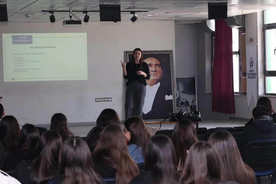 HBB Sağlık ve Sosyal Hizmetler Dairesi Başkanlığı bünyesinde görev yapan uzman diyetisyenler, ramazan ayında sağlıklı beslenme konusunda farkındalık oluşturmak amacıyla öğrencilere yönelik bilgilendirme çalışmaları gerçekleştirdi.