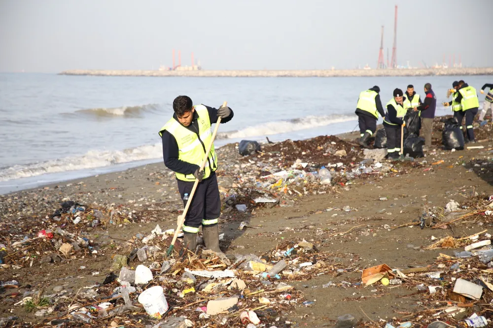 Sağanak yağmurun etkisiyle Dörtyol Dörttaş Sahiline derelerden deşarj olan ve biriken katı atıkları temizleyen HBB ekipleri. 2 km’lik kıyı şeridinde çevre kirliliğinin önüne geçmek adına yaptığı çalışmalarda 30 ton civarında katı atığın temizlenmesini sağladı.