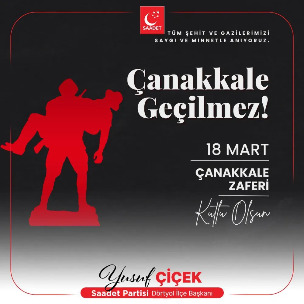 SAADET PARTİSİ DÖRTYOL İLÇE BAŞKANI YUSUF ÇİÇEK’TEN 18 MART ÇANAKKALE ZAFERİ MESAJI