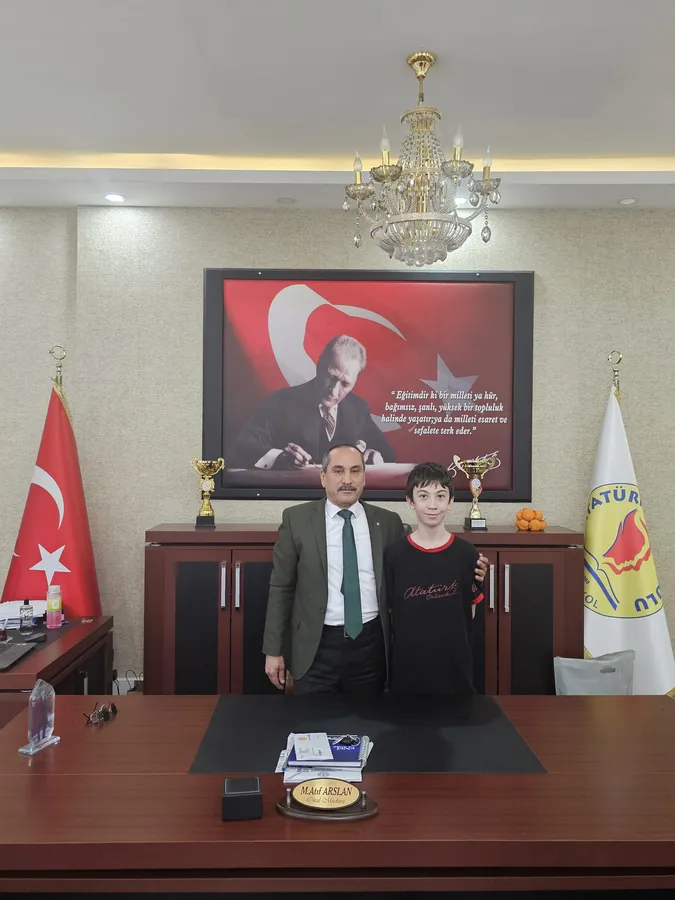 Spor Toto Süper Lig Yıldızlar Kickboks Point Türkiye Milli Takım seçmelerinde 37 kg’da Türkiye Birinciliğini alan Yusuf Yanık’ın başarısıyla gururlandıklarını belirten Atatürk Ortaokulu Müdürü Atıf ARSLAN, “Hem sınıfta, hem ringde; Türkiye’nin en iyisi” diyerek yaptığı açıklamada; “Eğitimin her alanında liderliği hedefleyen okulumuz, hem dersliklerde hem de spor arenalarında tarih yazmaya devam ediyor.