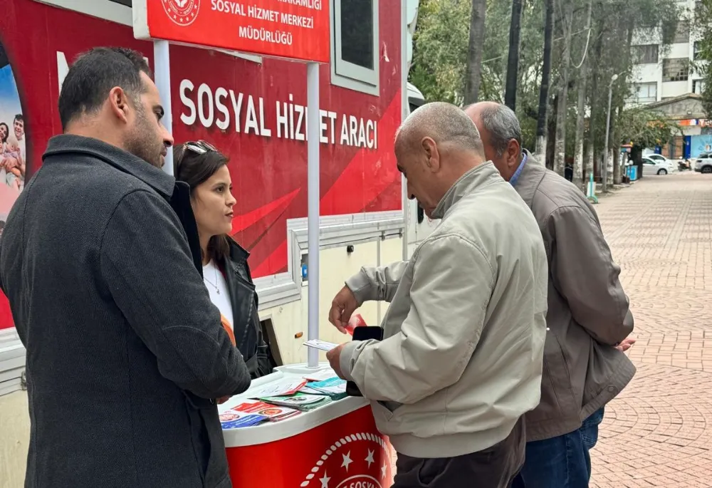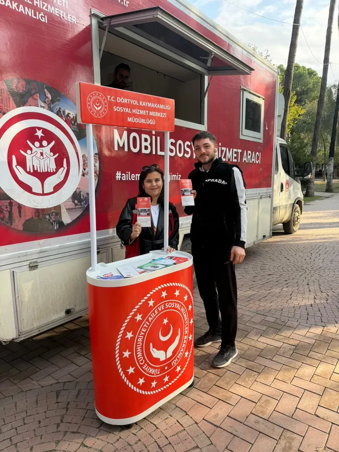 Dörtyol Sosyal Hizmet Merkezi Müdürlüğü, sosyal hizmetleri vatandaşın ayağına götürme hedefiyle başlattığı Mobil Sosyal Hizmet Merkezi aracıyla Dörtyol'da hizmet vermeye devam ediyor. Vatandaşların yoğun ilgi gösterdiği durağı Atatürk Parkı oldu.