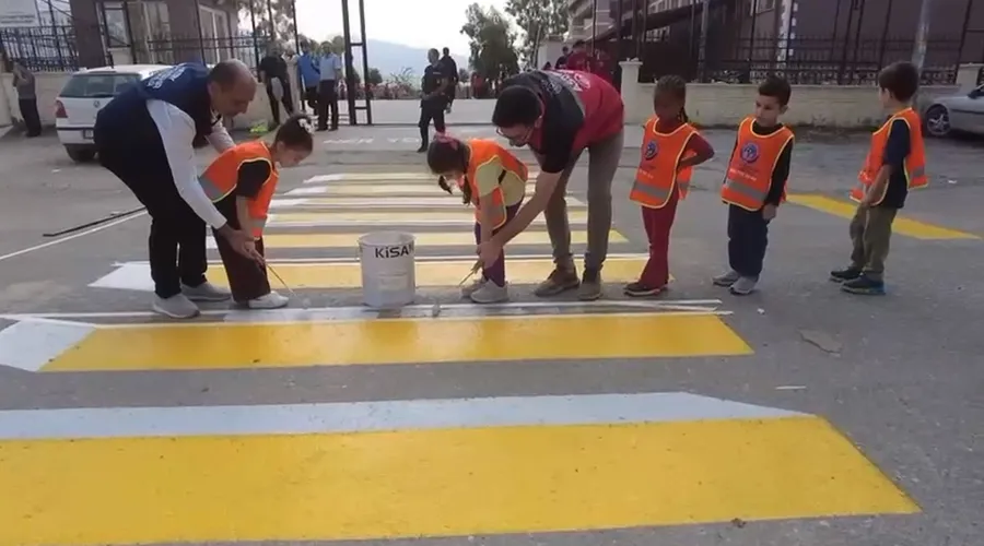 Hatay’da ilk olarak yapılan ve trafikte farkındalık oluşturma bilincini sağlayan proje kapsamında bilgi veren HBB, uygulama sırasında trafik bilincini aşılamak adına lise ve anaokulu öğrencileri ile birlikte çizgilerin boyandığını ve okul önlerinde yaşanacak kazaların önüne geçilmesinin hedeflendiğini aktardı.