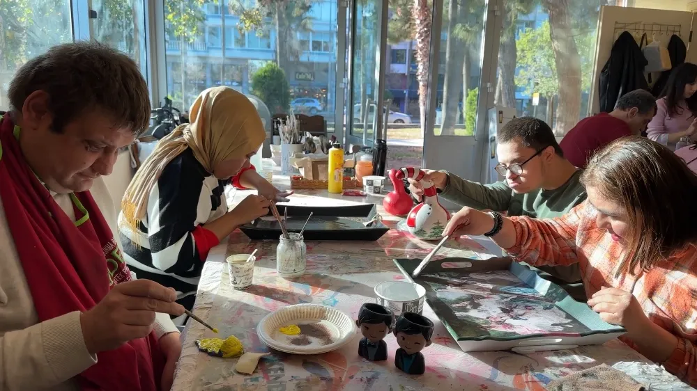 Engelsiz atölyesinde el becerilerini geliştirerek zamanını geçiren özel bireyler yaptıkları çalışmalarla ilgili bilgiler vererek “Çok güzel şeyler öğreniyoruz. Seramik, çini, ahşap boyama, dokuma yapıyoruz. Burada zaman geçiriyoruz, üretim yapıyoruz. Öğretmenlerimizle birlikte burada olmaktan çok mutluyuz…” diye konuştular.