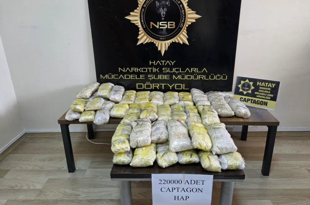 Hatay Emniyet Müdürlüğü Görevlilerince uyuşturucu madde kullanımının ve ticaretinin önlenmesine yönelik yürütülen çalışmalar kapsamında Erzin Dağ-Sa uygulama noktasında durumundan şüphelenerek durdurulan TIR’da yapılan aramada; 220 Bin adet captagon hap ele geçirildi.
