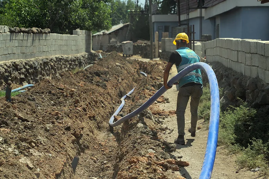Su ve kanalizasyon İdaresi Genel Müdürlüğü (HATSU), içme suyu şebekesi olmayan ve ekonomik ömrünü tamamlaması nedeniyle sık sık su kayıpları yaşanan bölgelerde yeni içme suyu şebekesi inşa çalışmalarını sürdürüyor.