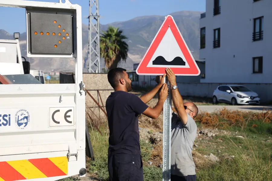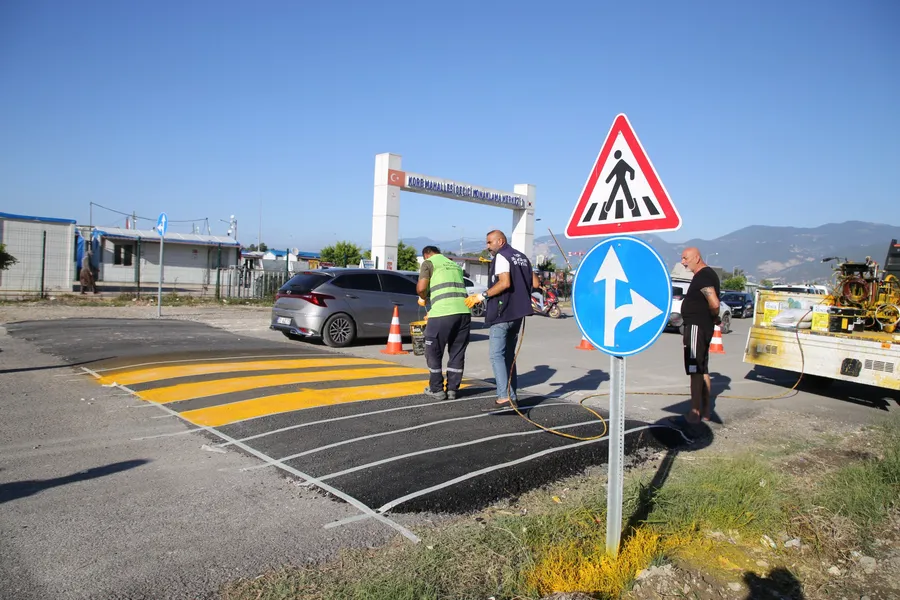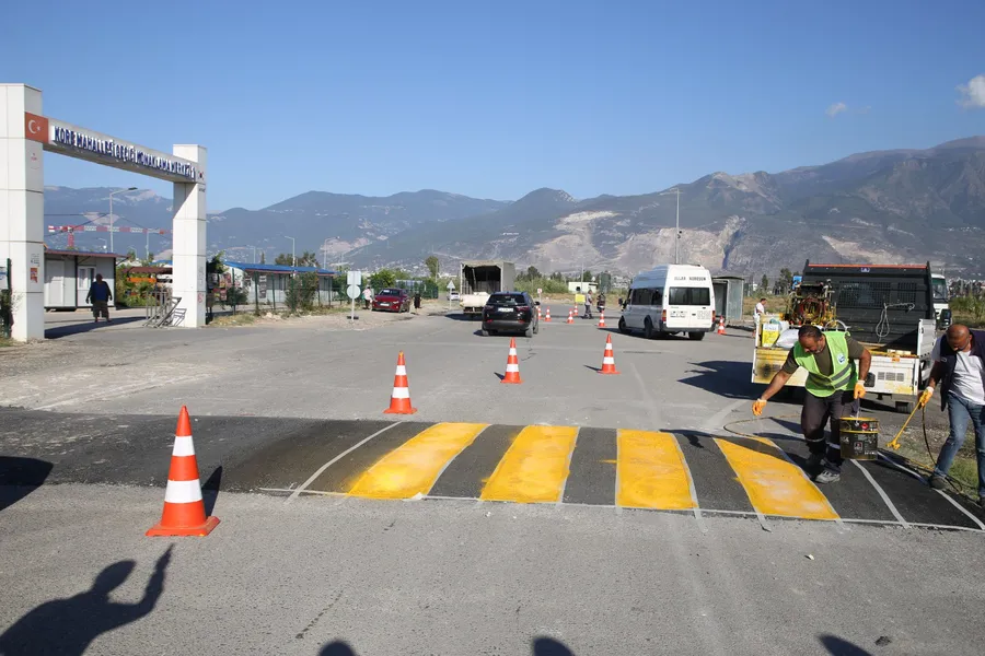 Kent genelinde bulunan konteyner kent sakinlerinin taleplerine kulak vermek ve eksiklerini gidermek için çalışma yapan HBB Ulaşım Dairesi Başkanlığı ekipleri, İskenderun ilçesinde bulunan Kore Konteyner Kent önünde bulunan ana yolda oluşacak trafik kazalarını önlemek adına çalışma gerçekleştirdi.