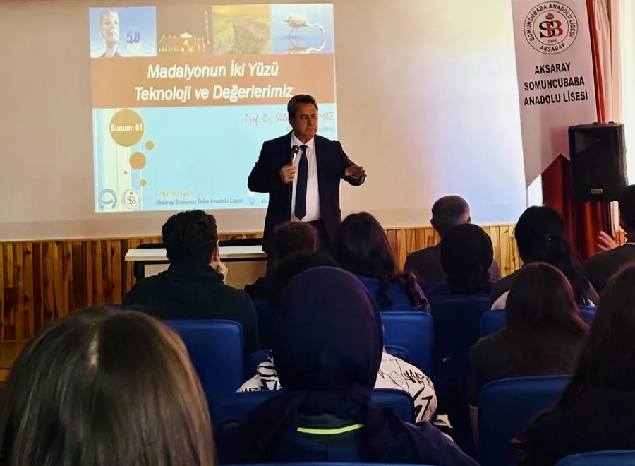 “Sosyal Medya mahremiyet sınırlarını zorluyor. Dijital mecradan kaçamayız ama dijital ayak izimiz bizi ele verecek” diyen ve Lise öğrencileri ve öğretmenleriyle buluşan ASÜ Eğitim Fakültesi öğretim üyesi Prof. Dr. Süleyman Yılmaz, konferansta gençlere dijital bilinç oluşmasının gelecekte bizi karşımıza çıkacak risklerden nasıl koruyacağından bahsetti.