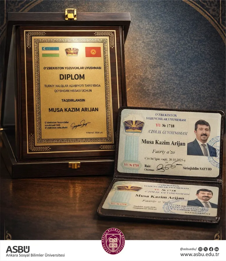 Ahşap muhafaza içerisinde sunulan diploma ve Özbekistan Yazarlar Birliği’ne ait fahri üyelik belgesi, Türk Dünyası’nın ortak edebî mirasına yönelik iş birliğinin nişanesi olarak takdim edildi. Nevâî’nin dil, estetik ve düşünce alanında inşa ettiği yüksek medeniyet tasavvurunun günümüzde de kültürel dayanışmayı besleyen güçlü bir referans olduğu vurgulandı.